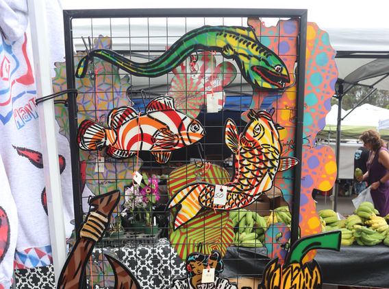 Small and large hand-made magnets, upcycled vinyl records made into planters and hanging planters, birch plywood plaques and a wide variety of apparel such as women's tank tops, kids t-shirts, unisex t-shirts and hoodies and tote bags. Everything made from handmade stencils and spray paint.