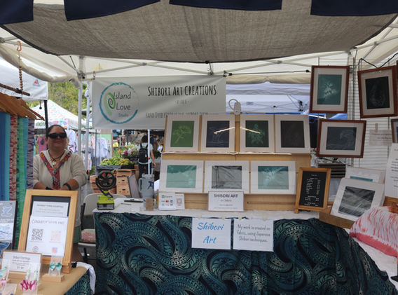 Shibori is a Japanese art form that is centuries old. It involves folding, binding, gathering or stitching to manipulate fabric to resist dye, creating unique patterns and designs. I use a stitch resist technique that starts with strategically hand stitching the design, tightening numerous threads and knotting them, dyeing the fabric, then carefully removing each thread to reveal the piece. A binding technique is used to create the designs on my towels and scarves. in 2020 I turned my passion for Shibori into a full time career. My designs are inspired by the diverse natural environment here on Hawai'i Island and the surrounding waters. Stop by my booth, say hi and ask me about my art.